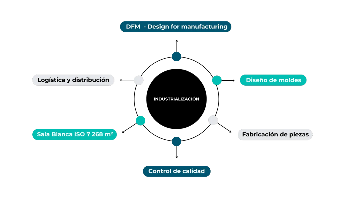 Eficiencia máxima, reducción de costes y procesos totalmente controlados: gestionamos cada etapa, desde el diseño del molde hasta el ensamblaje final en sala blanca, lo que te garantiza resultados precisos y confiables.