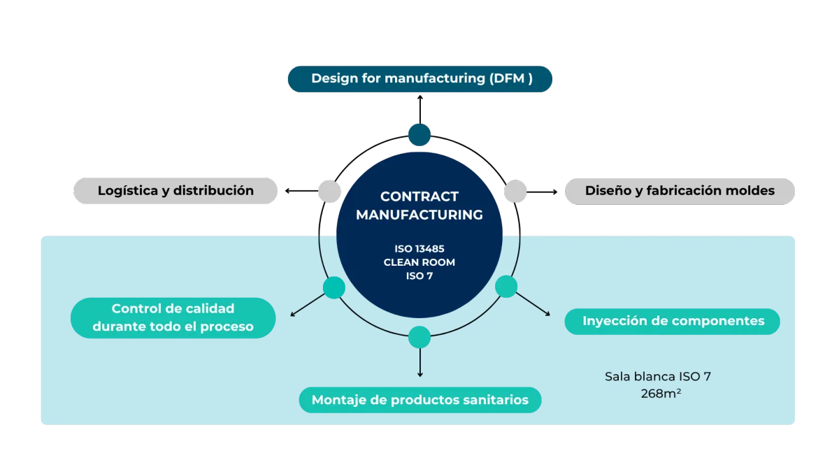Gestionamos todas las etapas de la fabricación de tus dispositivos médicos, optimizando tiempos y costes, y asegurando siempre los más altos estándares de calidad y cumplimiento normativo